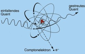 wird (Comptonelektron). Das Atom wird ionisiert. Das Quant hat